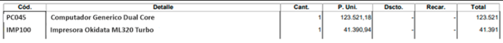 • Detalles con impuestos adicionales, que son excluidos automáticamente.