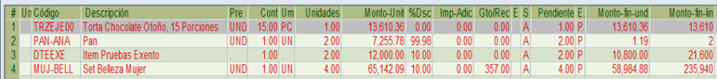 Naturalmente el precio neto final del producto (que se muestra al desplazarse hacia el costado derecho) y el del documento (que se muestra al pie de este), se verán afectados por el descuento.